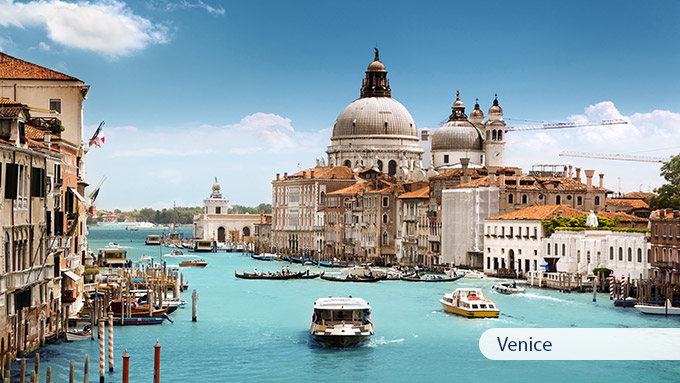 Llegada a Venecia y día libre para explorar la ciudad más romántica del mundo. Cena en un restaurante (incluida) y alojamiento en el hotel.