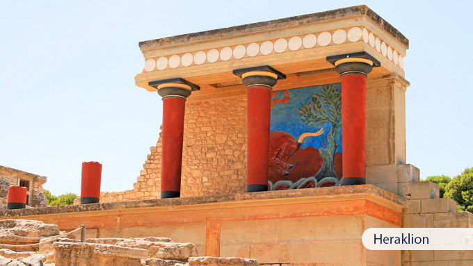 Creta con el palacio de Knossos que era el centro de la civilización minoica y Santorini, la leyenda viva de la ciudad perdida de la Atlántida, con impresionantes puestas de sol y los pintorescos edificios en forma de cubos de azúcar.